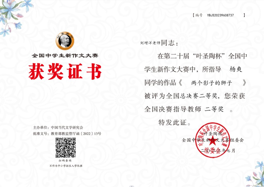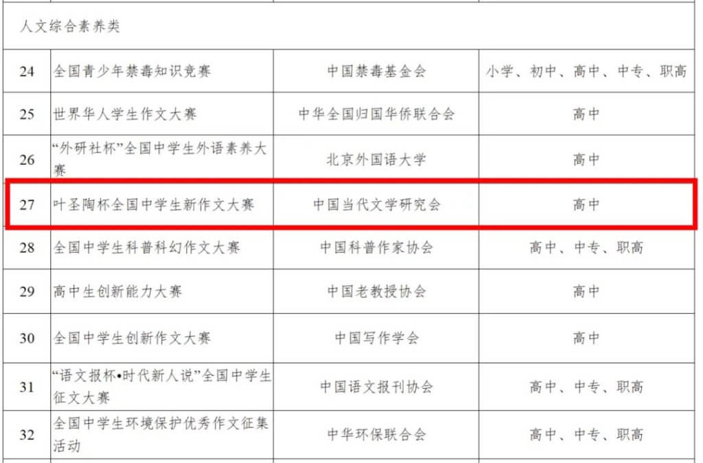 ~ “叶圣陶杯全国中学生新作文大赛”自2003年创立以来已成功举办了二十届,陪伴一批批的中学生激扬文字、圆梦青春,逐渐成长为广受中学师生欢迎和支持的品牌赛事活动。从2018年起,教育部规范管理面向中小学生举办的全国性赛事开始,叶圣陶杯大赛就一直名列“白名单”之中。