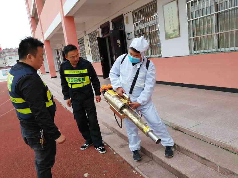 4月18日上午,定远县蓝天救援队戴剑、王翔威、李家冉三名志愿者义务为池河二小进行“全方位、全覆盖、无死角”的校园消毒,助力学生们返校复学工作。 志愿者扛起专业的消杀设备…