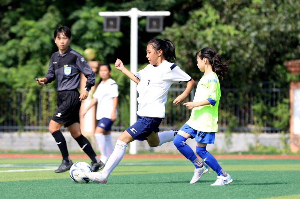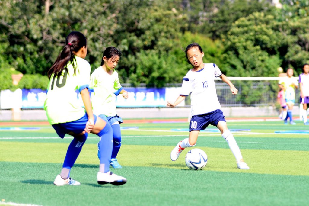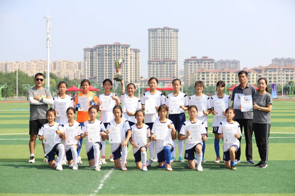 此次比赛新区实验学校教育集团共派出16名队员与来自滁州市各县区的14支代表队同场竞技。球场上小队员们默契配合、竞相追逐,或盘带突破、或全力防守、或奋起反击,足球在她们脚下快速传递,呐喊声、助威声在场边此起彼伏。经过激烈的角逐,新区实验学校教育集团代表队以零失球的不败战绩夺得了此次足球联赛女子组冠军。