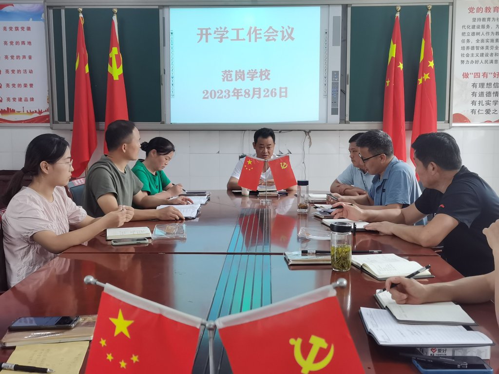~ 新学期开学在即,定远县范岗学校于8月26日下午三点召开行政人员会议,对开学工作进行全面部署,进一步落实。