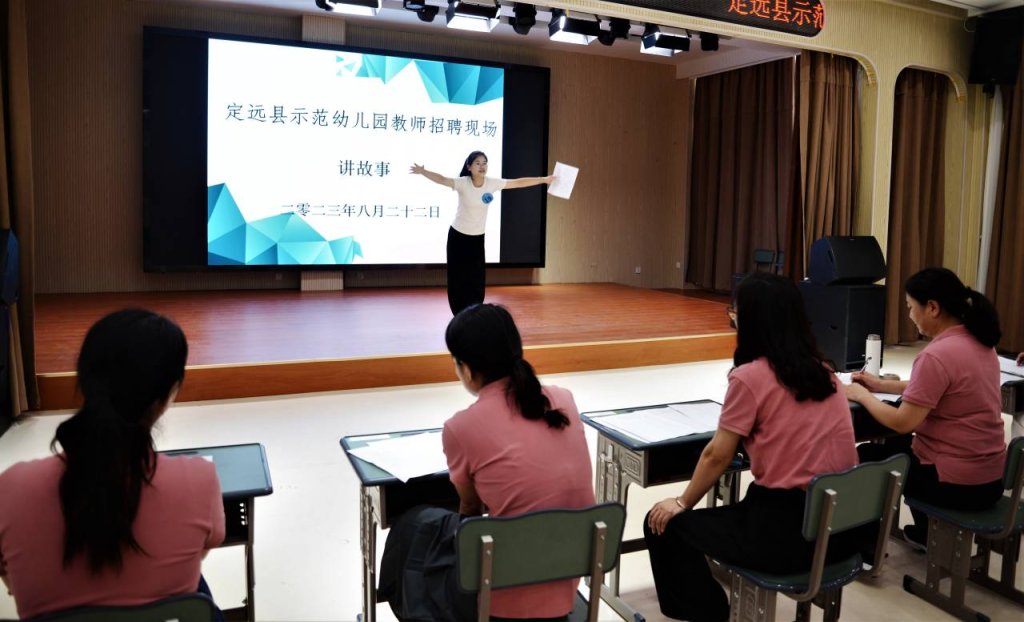 ~ 为满足幼儿园发展和教育教学工作需要,8月22日,定远县示范幼儿园举行2023年幼儿园聘用教师面试会。40余名考生参加,角逐7个工作岗位。