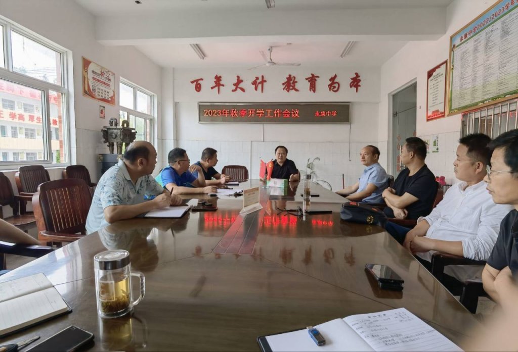 ~ 8月27日上午,定远县永康中学在小会议室召开2023年秋季开学工作会议。校党支部书记、校长董志友主持会议,全体行政人员参会。