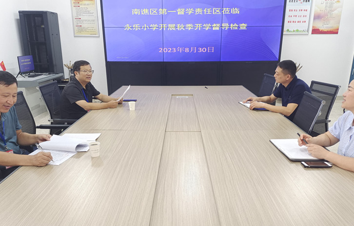 ~ 为确保学校秋季开学工作平稳、有序、高效进行,切实落实“双减”政策,8月30日上午,南谯区第一督学责任区督学深入永乐小学开展秋季开学督导检查,该校党总支书记姚杰等领导热情接待。