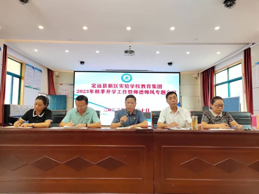凝心聚力开新局,砥砺奋进谱新篇。为全面部署新学期各项工作,推动新学期各项工作规范有序进行,8月30日,定远县新区实验学校教育集团召开新学期开学工作暨师德师风专题会议。会议由集团负责人李永书主持。集团各校区负责人及全体教职工参加了此次会议。