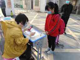 4月20日,定远县连江学校校门口处,该校防控复学小组全体成员站好岗位,根据学校复学实施方案,对返校的全体初二师生进行测体温、查安康码、登记健康档案等防控措施,以保证该校…