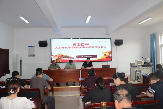 ~ 为切实做好贫困生资助政策的宣传工作,使国家扶贫资助政策深入人心,2023年9月5日,定远县青洛初中在新综合楼三楼会议室召开2023年秋季学期教育扶贫专题工作会议,会议由青洛初中党支部书记、校长单国选主持,全体教师参会。