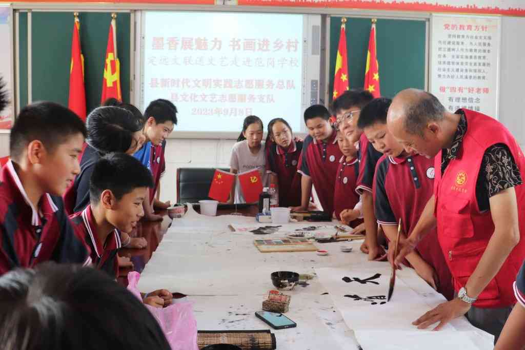 ~ 9月8日,定远县范岗学校邀请定远县书画协会的几名书画家走进校园,开展“书画进校园”活动。