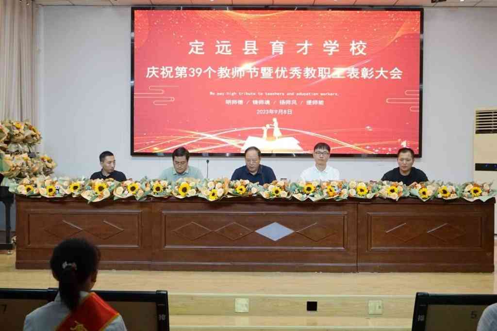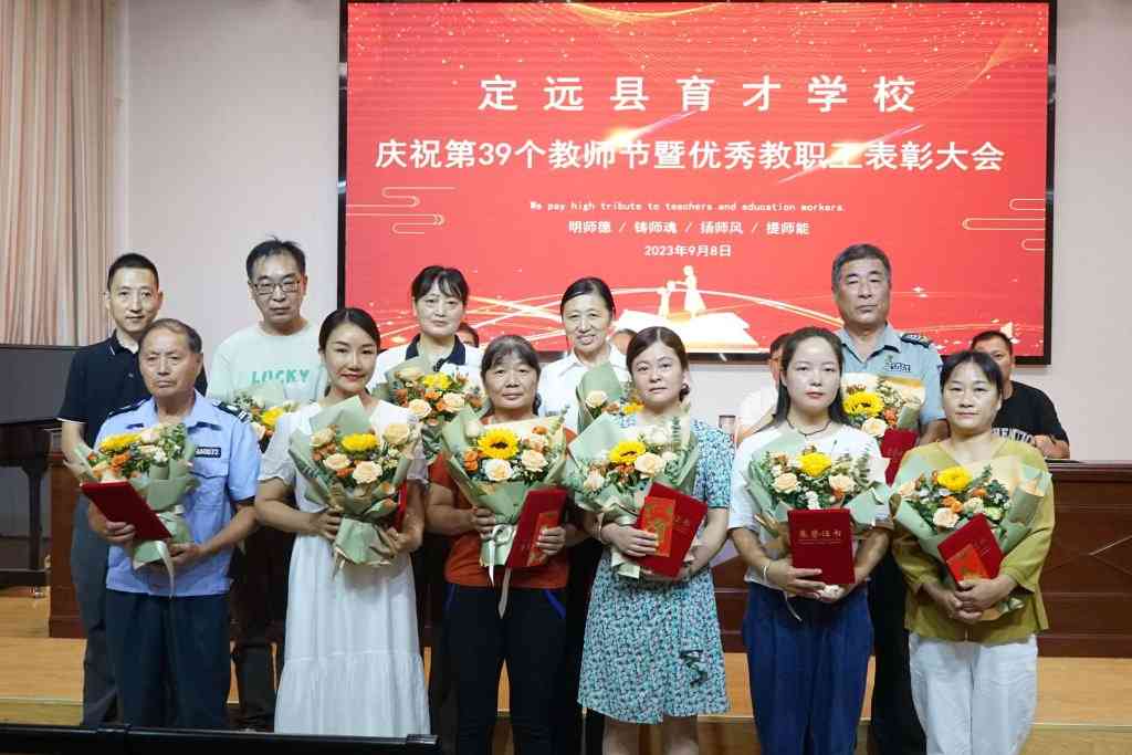 ~ 9月8日,定远县育才学校在综合楼四楼报告厅举行庆祝第39个教师节暨优秀教职工表彰大会。