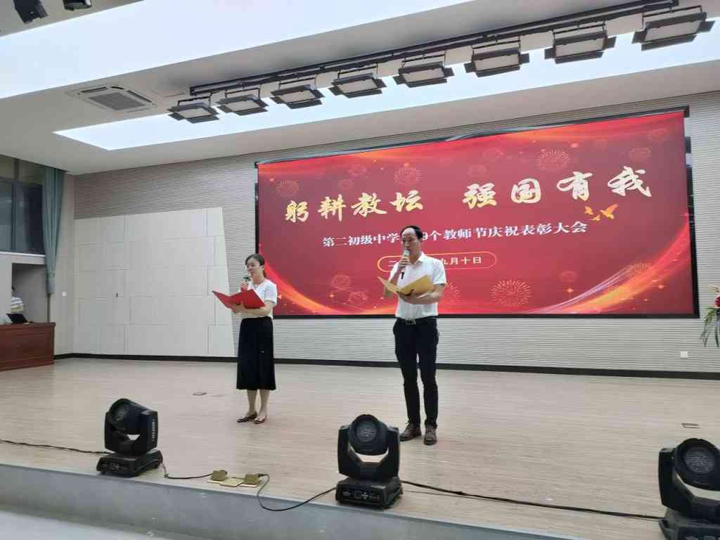 ~ 金秋九月,丹桂飘香,为了学习贯彻党的二十大精神,厚植老师们的教育情怀,提升老师们的凝聚力,激发老师们的工作热情,在第39个教师节到来之际,定远县第二初中全体教职工齐聚报告厅,召开以“躬耕教坛,强国有我”为主题的庆祝表彰大会。大会在庄严的国歌声中拉开序幕。
