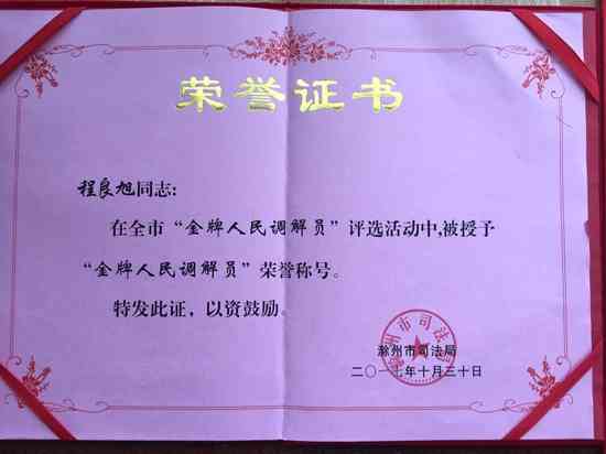 程良旭在多年的司法调解中始终善于思考和总结经验,以积极主动、高效务实、认真负责的工作态度,乐此不疲地工作在人民调解的第一线,哪里有纠纷,哪里就有他的身影,用司法调解努力维护社会稳定,保一方平安,在平凡的工作中追求着人生的价值。他以实际行动验证了他最喜欢的一句话:“调解千家事,温暖万人心”。(图文:黄振群 )