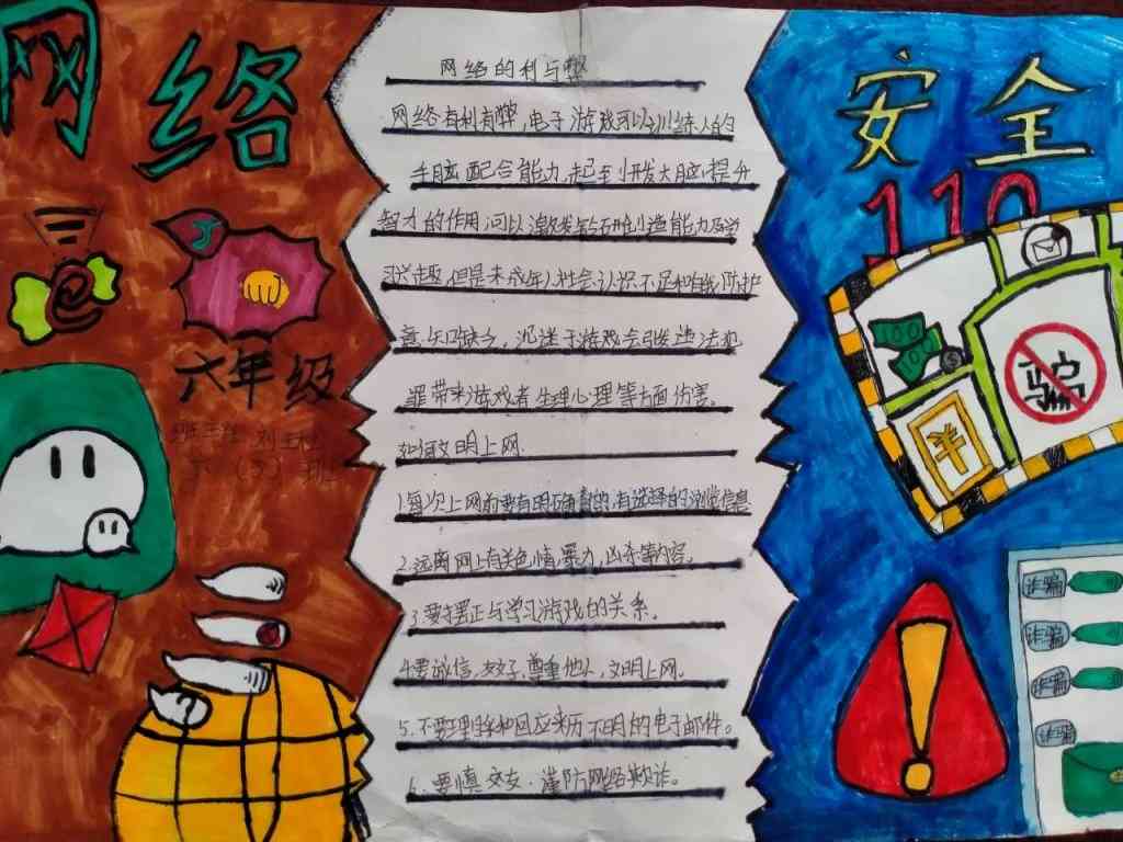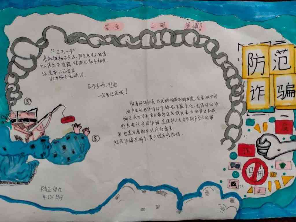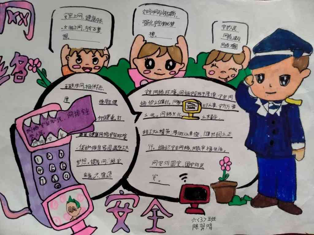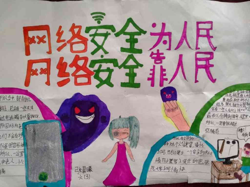 ~ 该校少先大队组织高年级的队员围绕“网络安全”,精心制作了内容新颖、美观大方、版面整洁的精美手抄报。有的同学在其中介绍《网络安全法》、《个人信息保护法》等重要法律法规;有的同学列举电信网络诈骗的案例;有的同学倡导安全上网、文明上网、绿色上网……