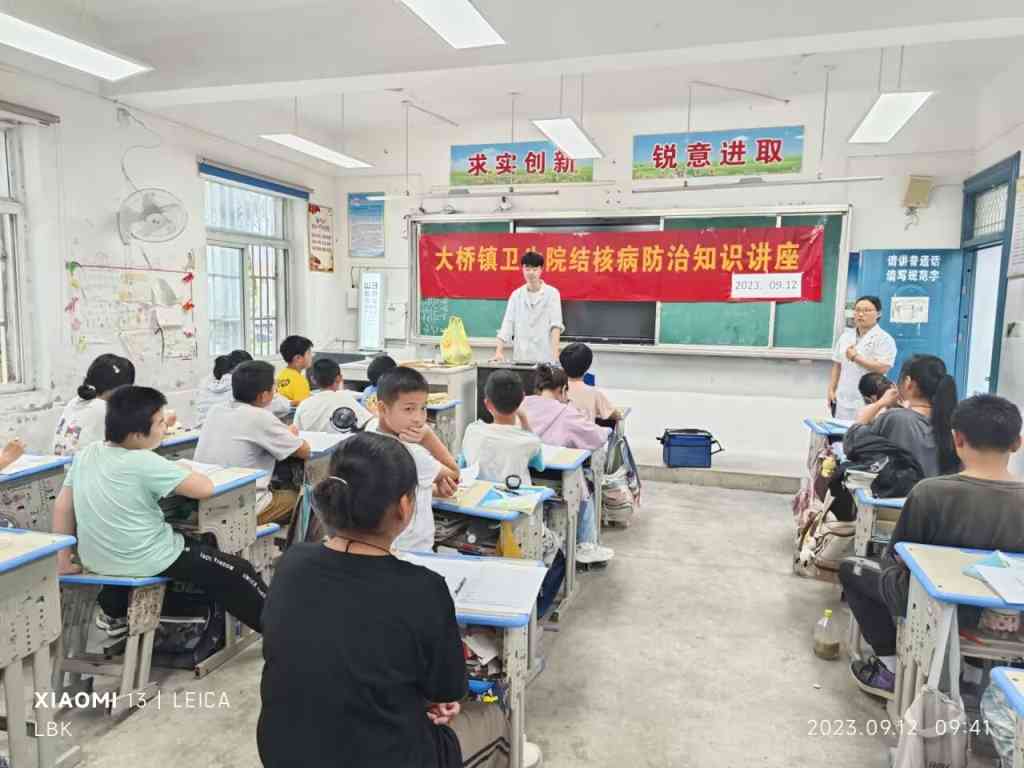 ~ 9月12日下午,定远县大桥镇卫生院工作人员,来到大桥初中,给全体学生进行了结核病防治知识讲座并进行了常规体检。