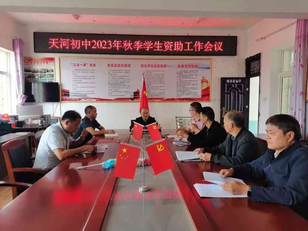 ~ 9月14日,天河初中在会议室召开资助工作专题会。参加会议的有校长张锦东、分管人员及各班班主任。学校还通过升旗仪式、主题班会等形式,向同学们宣讲了义务阶段初中的资助政策和资助标准,以及家庭经济困难学生登记办理的基本程序及注意事项。