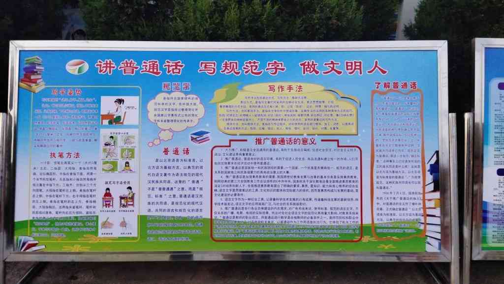 该校首先通过在校园里悬挂醒目的推普周宣传标语,利用校园广播组织师生学习《中华人民共和国国家通用语言文字法》、介绍推广普通话和使用规范字的意义等形式营造浓厚的推普氛围,把学校推普方案贯彻到全体师生。接下来,该校通过在教师群体中组织开展硬笔书法比赛,督促老师规范用字,发挥教师示范引领作用;在中高年级学生中举行用普通话讲故事和绕口令比赛;在低年级学生中举行课文朗诵比赛;在各班各年级开展一期推普板报、手抄报评比活动和主题班队会活动;在校园内外开展纠错活动等多样化的形式将推普工作落到实处,进一步提高了广大师生的语言能力。