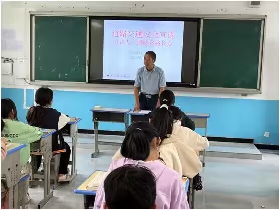~ 拂晓乡路长办为同学们带来“知危险、会避险”交通安全第一课。课堂上,路长利用通俗易懂、生动形象的语言,结合道路交通安全形势,详细讲解上学、放学时坚绝杜绝乘坐超员车、报废车、农用拖拉机,要乘坐规范校车,系好安全带。并通过播放宣传视频,细致讲述了近年来发生的多起涉及农村中小学生的交通事故案例,剖析和强调了各种交通陋习的严重危害,让学生们了解隐藏在自己身边的交通风险隐患。