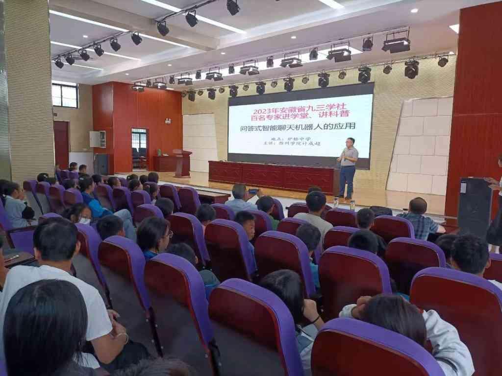 ~ 9月15日,定远县科协走进炉桥中学开展科普进校园宣传活动,学校八年级全体师生齐聚报告厅,一起聆听了由滁州学院副教授计成超主讲的《问答式智能聊天机器人的应用》科普知识讲座,活动由学校刘光副校长主持。
