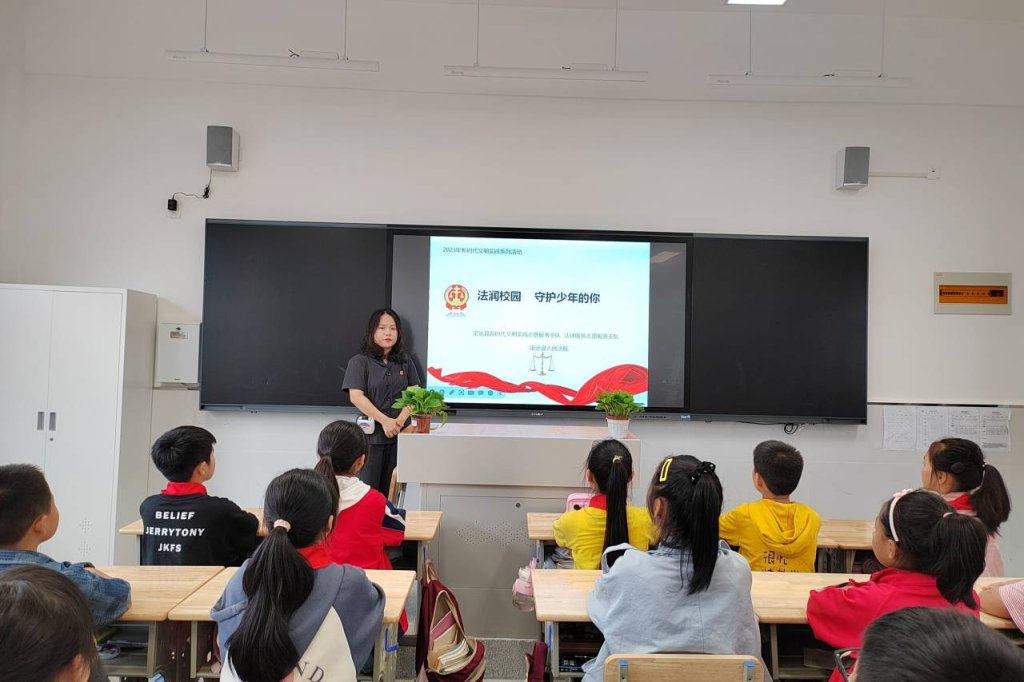 为进一步增强未成年人的法治意识,预防未成年人违法犯罪,营造尊法、学法、守法、用法的良好法治氛围,9月15日,定远县人民法院法官等一行走进滨湖小学,开展“法润校园 守护少年的你”主题普法宣传活动。