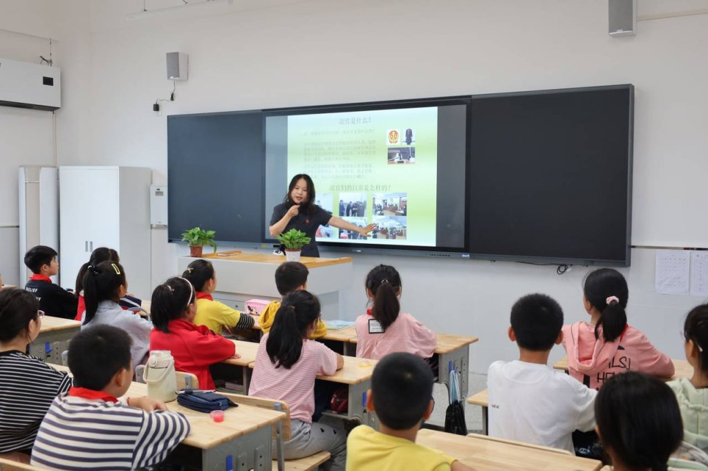 立案庭庭长王敏围绕“法官”是做什么的?“法院”是什么样的?关于未成年的法律有哪些?向校园欺凌说“不”这四个方面,引导小学生了解、寻求法律保护的渠道,掌握自我保护的方法,提高自我防范的意识。