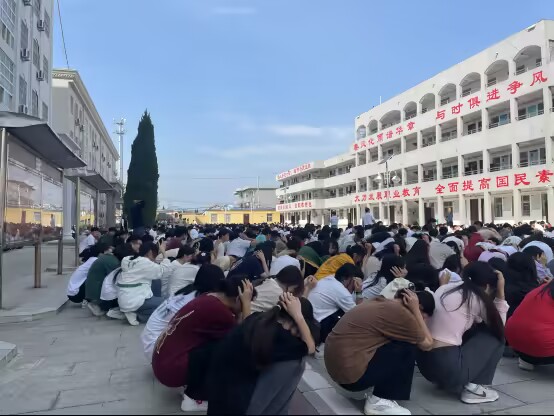 ~ 2023年9月18日上午9点18分,防空警报声响彻天穹,定远化工学校学子们肃立在楼前广场和足球场,进行纪念九一八事变防空演练并默哀。