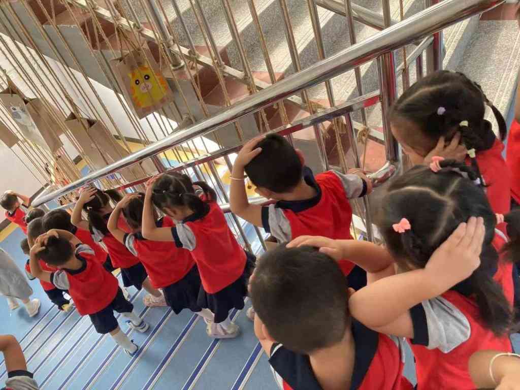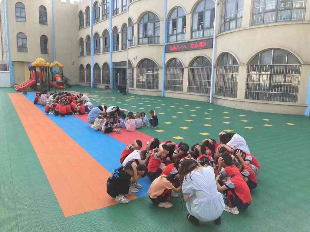 ~ 为激发幼儿爱国主义情怀,进一步提高全体师幼的防空安全意识,帮助师幼进一步掌握在应急突发事件中疏散撤离的基本逃生技能,当天上午,藕塘中心幼儿园还开展了纪念“九一八”防空演练活动。当急促的警报声在幼儿园上空响起时,孩子们在老师的带领下按预定的疏散路线,快速、有序地撤离到安全地带。到达安全区域后,老师安抚好孩子们的情绪,迅速清点人数,整个活动井然有序,分工明确。