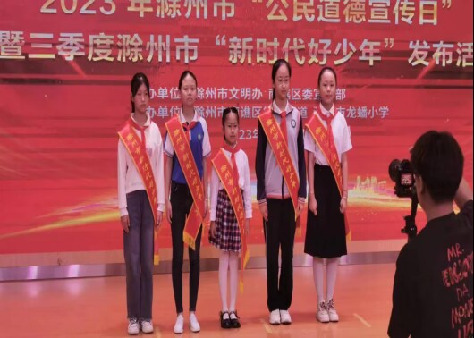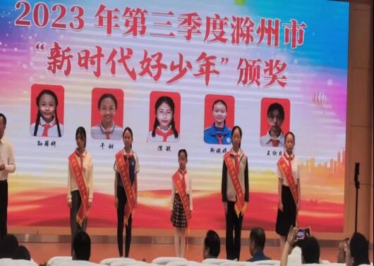 ~ 近日,由滁州市文明办,南谯区委宣传部举办的2023年滁州市“公民道德日”暨第三季度滁州市“新时代好少年”发布活动,该校靳婉婷同学获得了2023年滁州市第三季度“新时代好少年”的荣誉称号。
