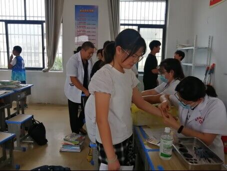 学校是人群高集中场所,相互接触密切,青少年学生自我保护意识相对较弱,很容易受到结核病感染,利用结核菌素试验对青少年进行筛查,是一种安全、快速、有效的方式。为了开展好此次体检工作,学校提前宣传,利用班会、家长微信群和发放宣传资料等多种方式,向学生和家长进行相关知识宣传告知,让学生和家长做到心中有数。当日,医护人员走进教室对学生逐一进行血压、体重、视力等检查和结核病筛查,并向师生宣传结核病防控和结核菌素接种的禁忌以及接种后的反应和出现反应后的处理等事宜。医护人员要求师生在日常生活养成良好的生活习惯,积极做好体育锻炼,增强体质,提高免疫力,在人员密集场所要做好个人卫生防护。