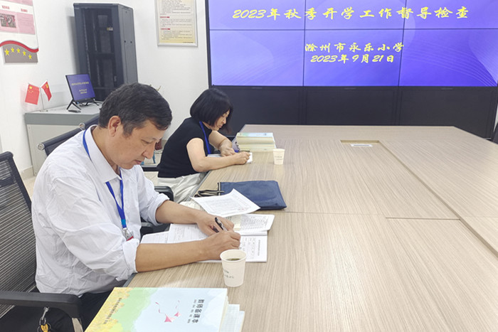 ~ 为严格落实“双减”政策,全面了解学校开学情况,有效指导学校做好秋季开学工作,9月22日,南谯区第一督学责任区督学深入永乐小学开展了2023年秋季开学工作督导检查,分管教学副校长张莉莉等领导予以陪同。