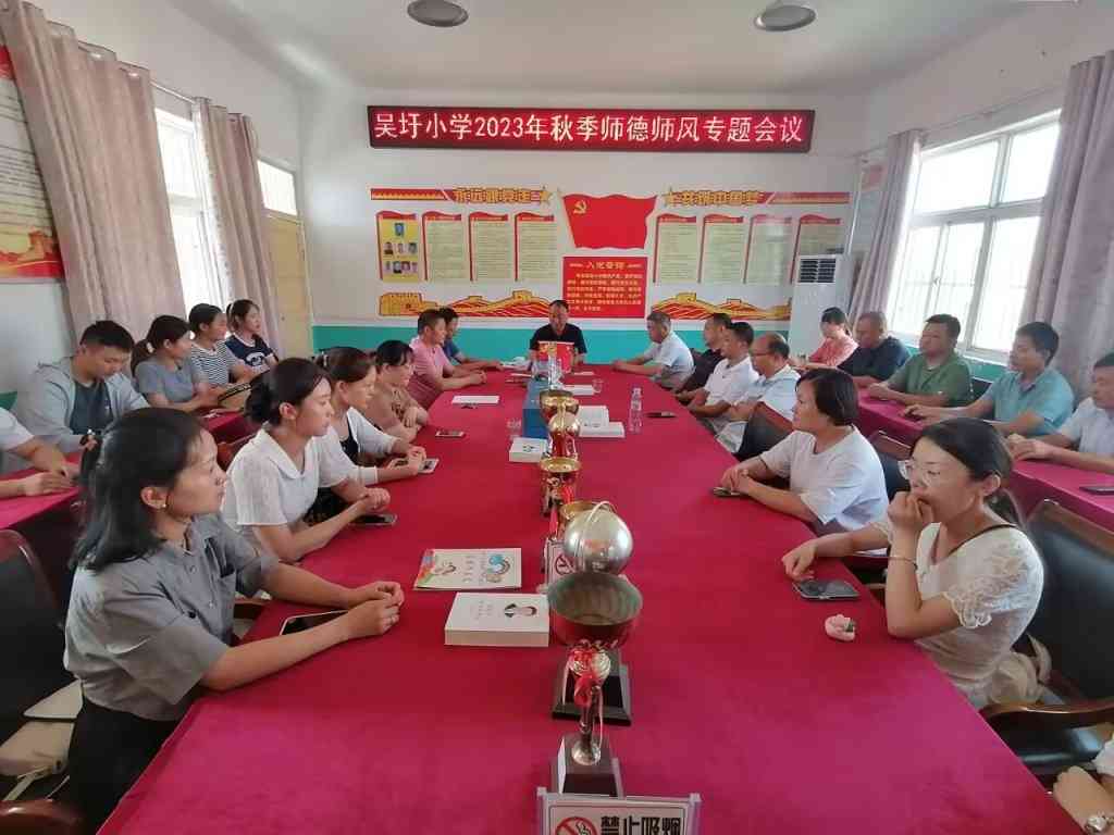 ~ 9月20日中午,定远县吴圩小学召开2023年秋季师德师风专题会议。会议由吴圩小学党支部书记、校长童超主持,全体教师参加了会议。