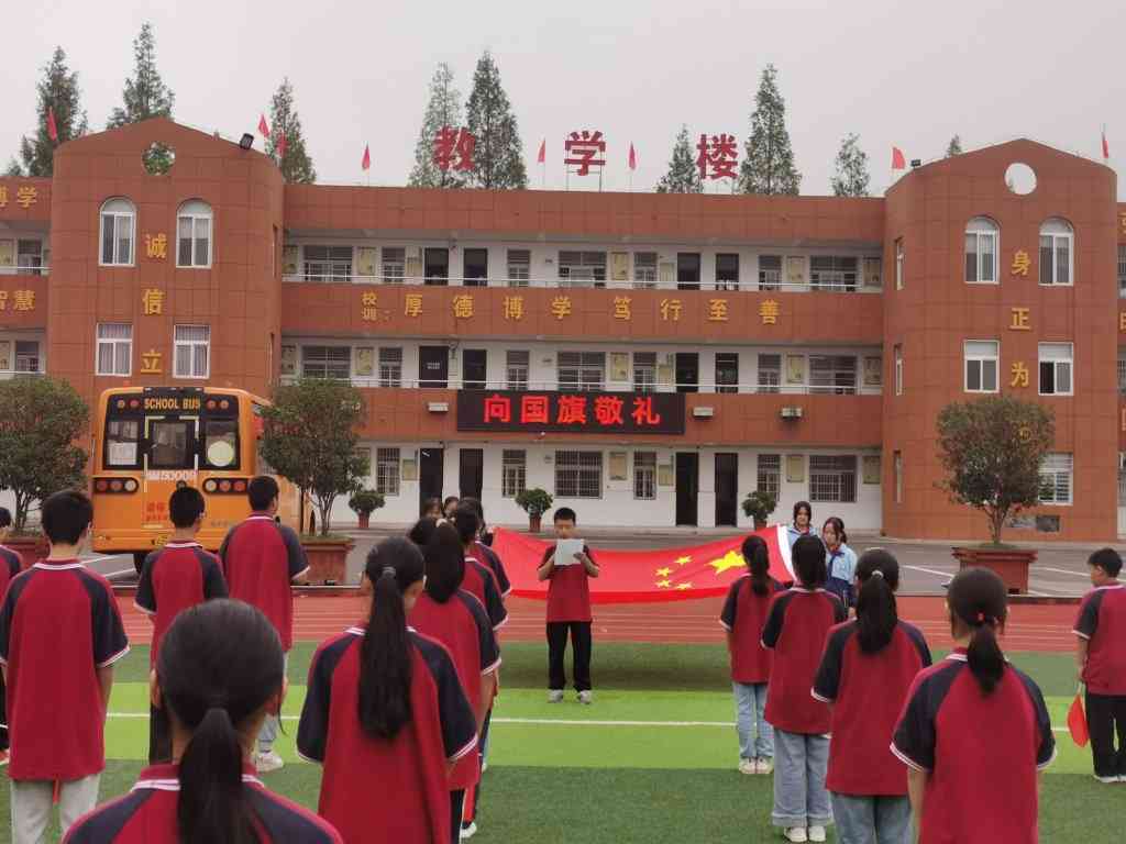 ~ 该校在大课间时段,举行庄严的“向国旗敬礼”仪式。伴随着国旗冉冉升起,庄严嘹亮的国歌响遍整个校园。全体师生纷纷向国旗敬礼。九(1)班的王邵楠同学作为学生代表发言,他表示作为未来的建设者,要把自己的成长融入祖国的发展,做敢于有梦、勤于追梦、勇于圆梦的好少年。