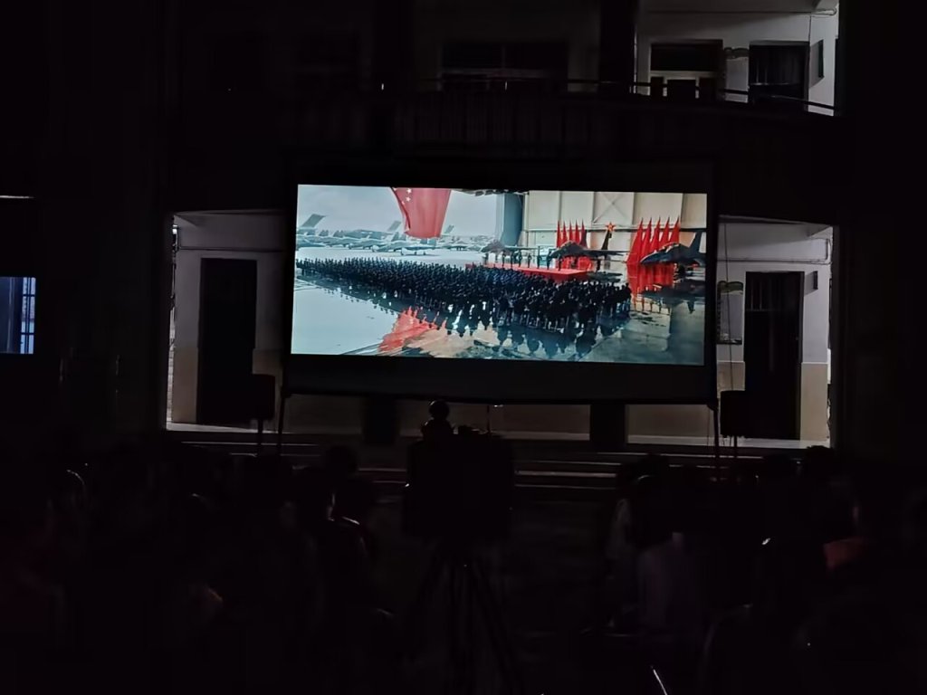 ~ 当晚,定远县电影公司为该校师生放映国防主题电影《长空之王》,该电影聚焦中国新时代空军试飞员,揭秘最新式战机诞生的艰辛历程。片中生动地描绘了试飞员在飞行中所经历的一切,那些参与试飞任务的英雄们以自己的生命为代价,用实际行动诠释了对强国强军梦的执着追求,传达出超越自我、追求极致的科学创新精神和勇于牺牲、甘于奉献的爱国敬业精神。