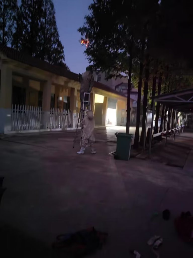 9月26日晚上,定远县消防大队接到定远县斋朗学校请求铲除校园内多处马蜂窝的警情后,立即派消防队员赶赴学校,铲掉蜂窝,消除隐患,保护校园平安。