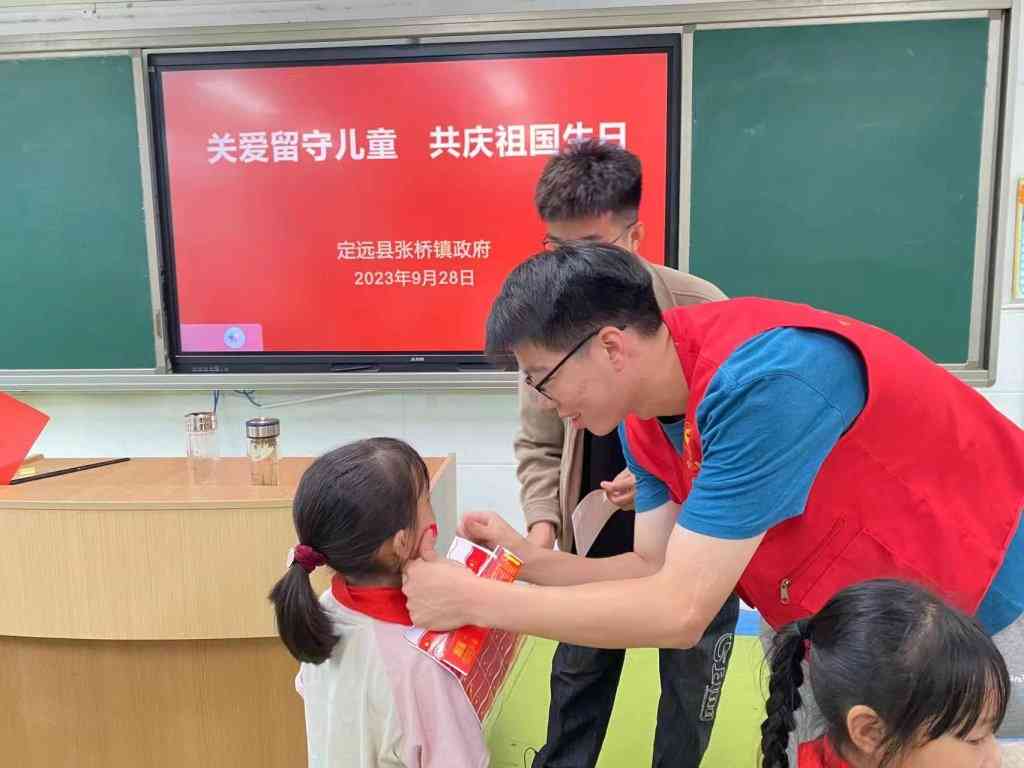 ~ 2023年9月28日上午,国庆、中秋双节将至,定远县张桥镇人大副主席王欢欢率志愿者来到张桥小学开展慰问留守儿童关爱活动,和孩子们共度中秋佳节、共庆祖国生日。