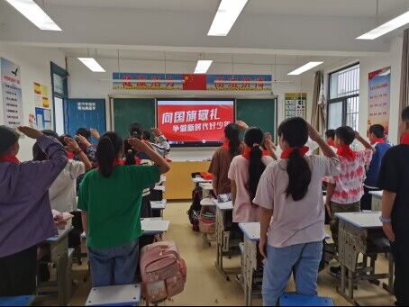 9月25日,全校师生排着整齐的队伍参加了升旗仪式,同学们在庄严的国歌声中向国旗致敬。学校少先队组织少先员以班级为单位开展向国旗敬礼,争做新时代好少年活动。活动中,师生们面向国旗,神情庄重地向鲜艳的五星红旗立正敬礼。各班级以主题班会、黑板报和与国旗合影等形式开展迎中秋庆国庆主题教育活动,庆祝祖国华诞,教育广大学生要传承中华优秀传统文化,同学们在活动中大声说出对祖国的爱,表达出对祖国母亲的深深热挚爱。