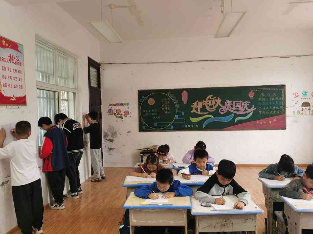 ~ 9月28日,定远县郭集学校为了营造浓厚的节日氛围,丰富校园文化生活,充分发挥黑板报阵地的育人作用,开展了“迎中秋•庆国庆”主题板报评比活动。