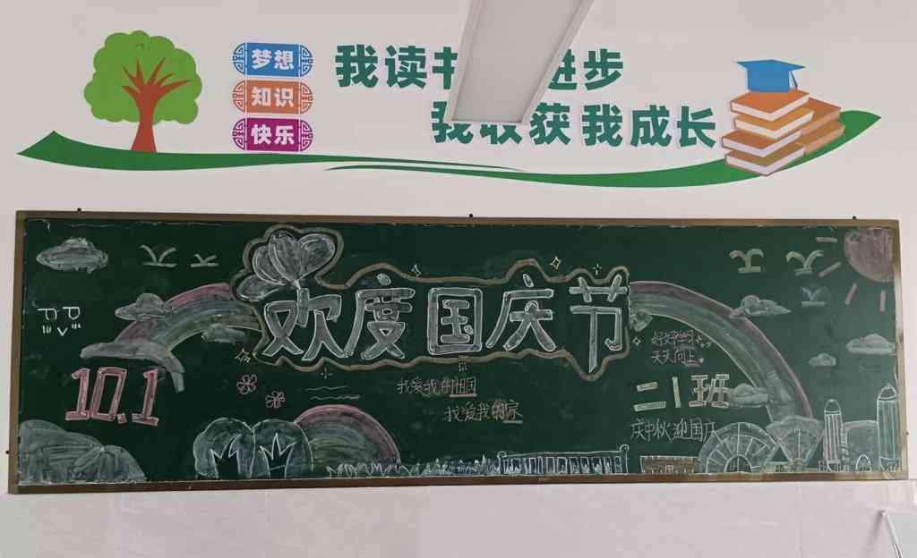 为了庆祝国庆节和中秋节“双节”来临,9月28日,定远县七里塘学校以“迎中秋 庆国庆”为主题进行了黑板报的评比活动。