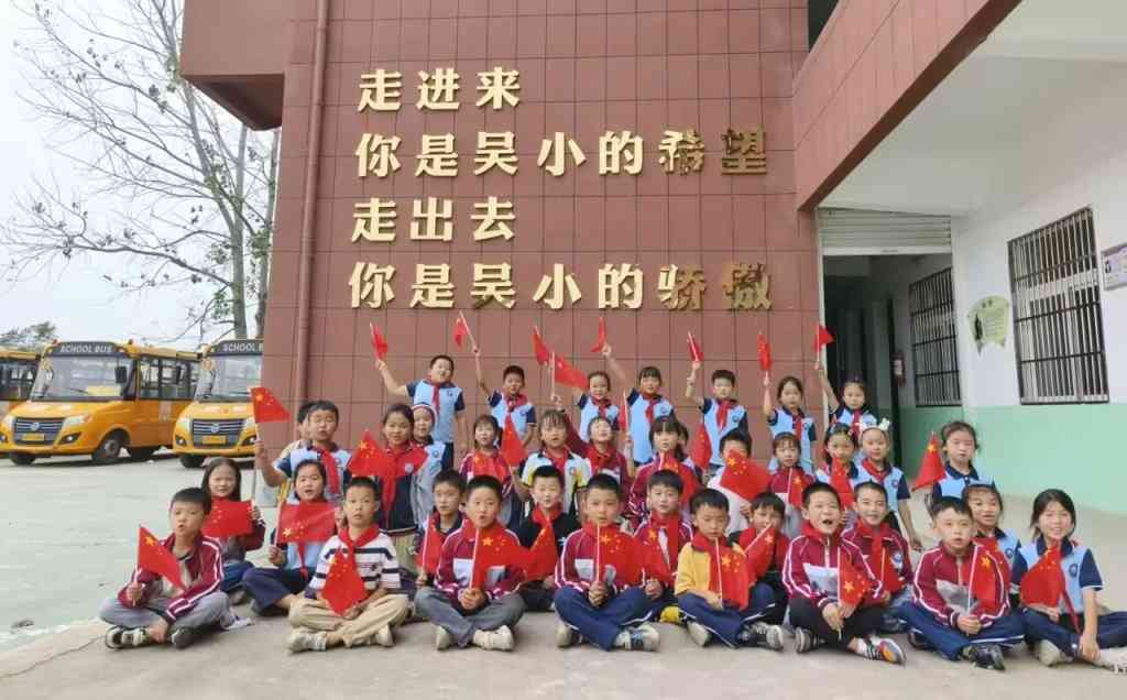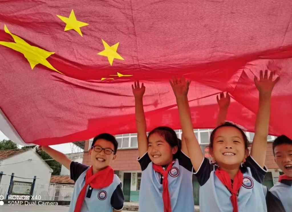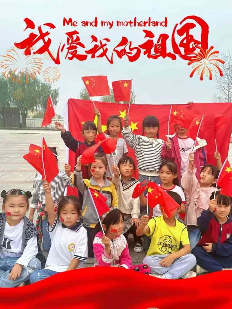 ~ 或与老师同框,或与朋友结伴,孩子们以国旗为背景合影,留下为祖国庆生的欢快时刻。