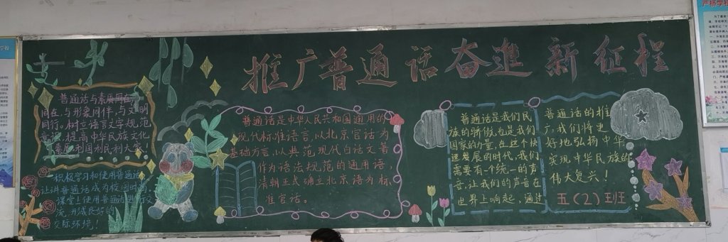 ~ 为进一步开展推广普通话,净化校园语言文字环境,为师生创设良好的语言实践条件和氛围,让全体师生养成“说普通话,写规范字”的良好行为习惯,促进师生综合素质的全面提高,日前,定远县严桥学校组织各班级以“说普通话,写规范字”为主题开展了黑板报评比活动。