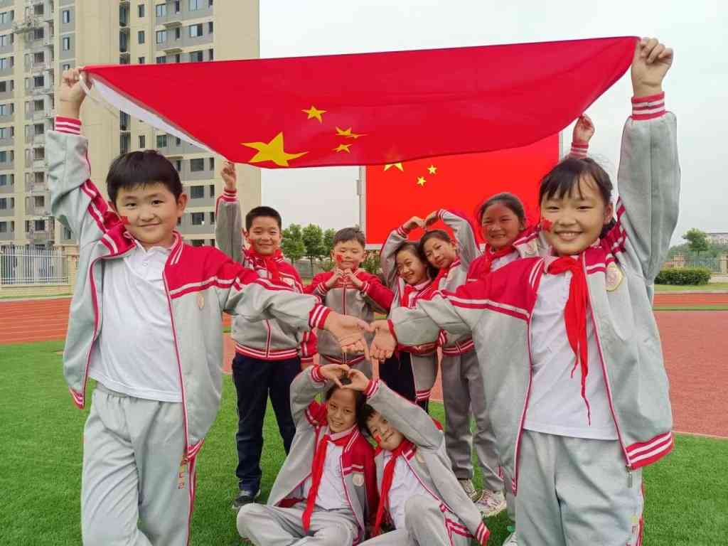 ~ 活动中少先队员们创意十足,以各种创意造型与国旗合影。一个镜头,一张照片,一种精神,一份传承。孩子们围绕在鲜艳的五星红旗旁,诉说着对祖国真挚的祝福,“我爱你,中国!”“亲爱的祖国妈妈,生日快乐!”。鲜艳的五星红旗、灿烂的笑脸,构成了一幅幅庄重和谐的美好画面。(图文:李利荣 张怡雯 初审:黄若舟 审核:张宏旗 审签:陈恩源)