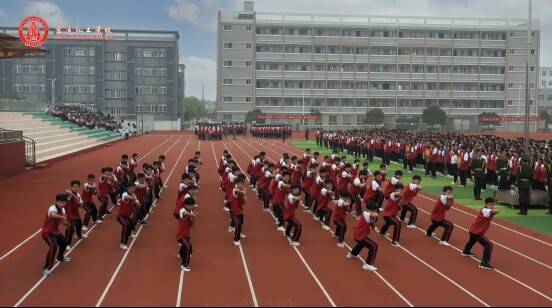~ 伴随着庄严的国歌声,整肃的仪仗队缓缓向前,军训闭幕式正式开始。随着教官代表吴兵兵一声令下,闭幕式上先后进行了军歌、列队及男女生军体拳表演。经过14天的严格训练,2023级新生们精神饱满、意气风发,在教官指挥下,从容有序的向主席台展示训练成果。