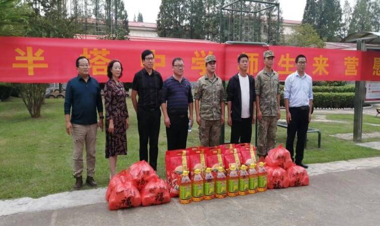 ~ 秋高气爽,蔬果飘香,在中秋节和国庆节到来前夕,来安县半塔中学党总支书记、校长邬广明、副书记李世华和副校长庄学飞等领导携十几名师生,带着全体师生对人民解放军的崇高敬意,驱车前往50多公里的驻滁7某部队进行慰问并联演了精彩节目。