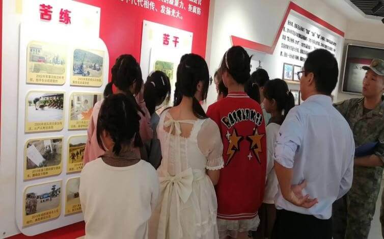 ~ 随后,接待人员邀请师生们参观连史室。一进门,照壁上的“防空利器,打赢尖兵”红色大字分外夺目,照壁下方摆放着几枚炮弹模型。该连队是高炮连,组建于1968年,由白手起家发展成为今天的现代化高炮连队。连史讲解员张健给师生们阐述了连队“连魂”“连训”和“苦学苦练苦干”的三苦精神,讲解了连队的历史沿革,与大家分享了三名战士去南京为连队买电脑,没赶上车,夜间步行40多公里回连队的感人故事。大家对该连队“一不怕苦,二不怕死”的精神有了深刻的领悟,一边听讲一边仔细观看连队训练的照片,默念着英雄榜和挂满荣誉墙上的奖状。