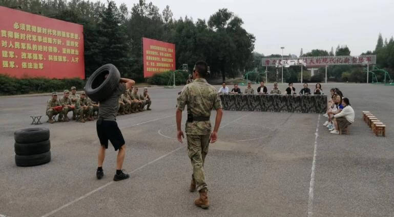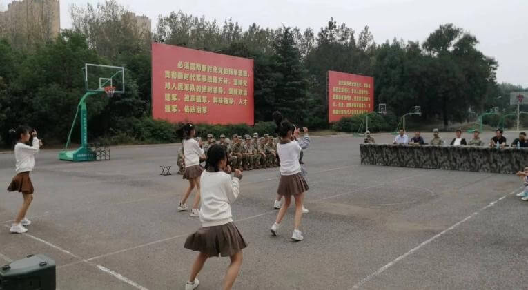 ~ 告别了枪械,傅营长陪同慰问师生走进篮球场,这是联欢会简易场地,数十名战士跑步进入场地一侧挺胸端坐。半塔中学此次慰问,除了带些礼品,还为连队官兵准备了几支歌舞,与他们举行联欢。连队战士以吉他弹唱开场,展示了军人的铁骨柔情,学生陈政旭朗诵了《接过父辈的火炬》,表达青少年传承革命理想的决心;女生献演的几支舞蹈跃动着活泼靓丽的旋律,战士表演的小品《陪练》表现出训练中严而有爱。他们的精彩表演获得大家阵阵掌声与喝彩。