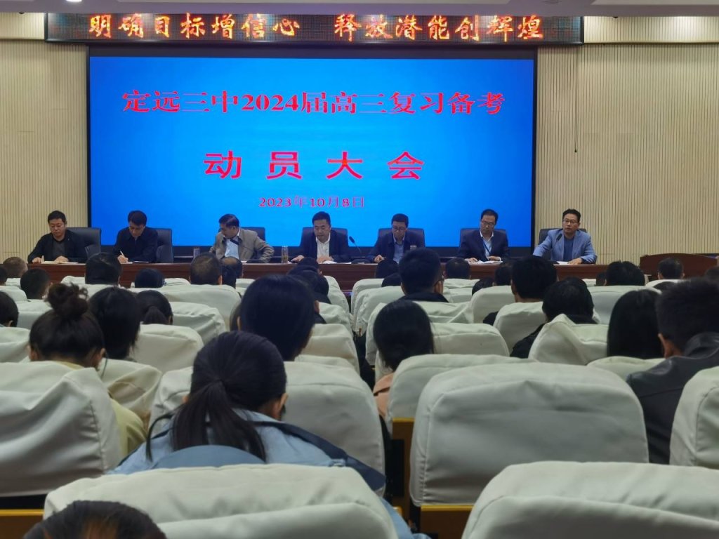 ~ 高考战鼓犹贯耳,崭新征程再扬鞭。10月8日,定远三中在科学馆召开2024届高三备考动员会,校党委领导班子、高三学科指导组成员及全体高三教师参加了本次会议,会议由校党委副书记曹士宏主持。