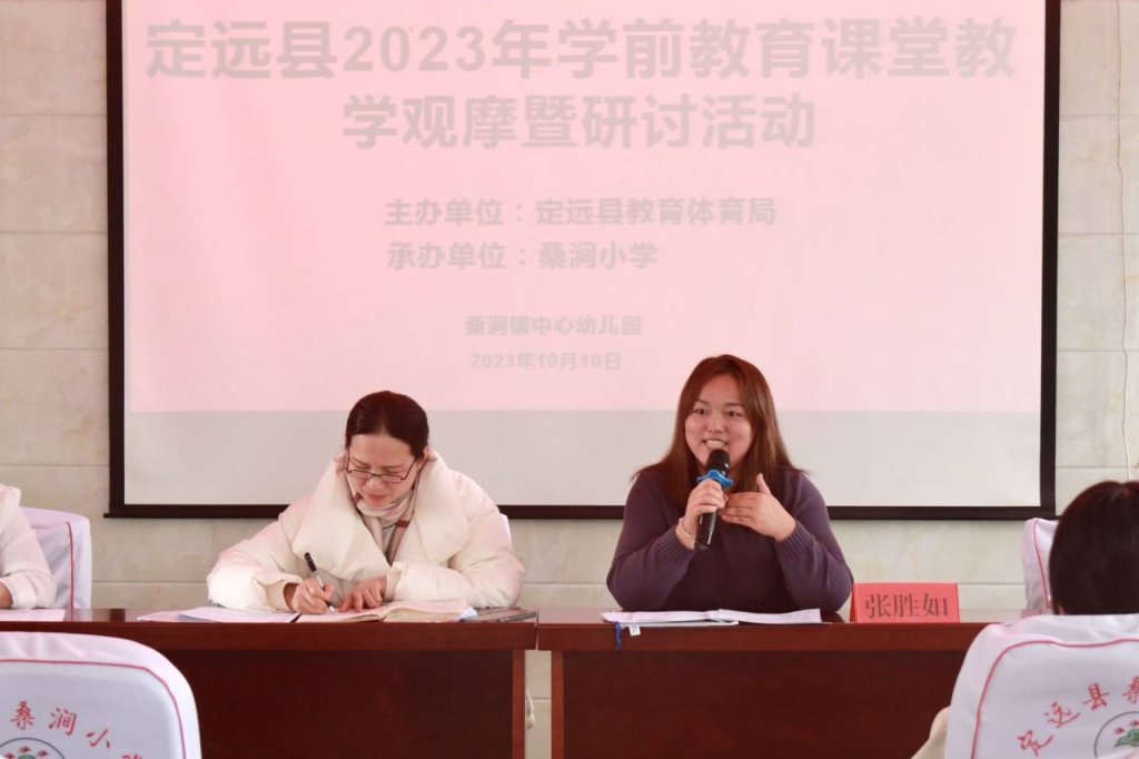 ~ 一个人走得很快,一群人走得更远。为了提高课堂教学效率、交流教学优秀经验等领域的引领作用。2023年10月10日上午,定远县学前教育课堂教学观摩暨研讨活动在桑涧镇中心幼儿园展开,教体局教研员李秀娟主任、学科专家张胜如老师,民族小学幼儿园及池河片、藕塘片各园教师,桑涧镇中心幼儿园教研组教师参加了此次研训活动。