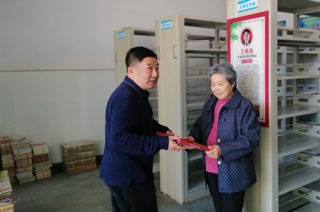 ~ 10月12日上午,滁州市旅游商贸学校图书室收到一份特别的藏书,捐赠人是滁州市知名教育工作者王再友的遗孀戴金秀老师,捐赠的书籍有:《毛泽东选集》《教育辞典》《算术辞典》《中国传世书法》等五千余册,学校党总支书记程本斌接受了捐赠并为戴金秀老师颁发《捐赠证书》。