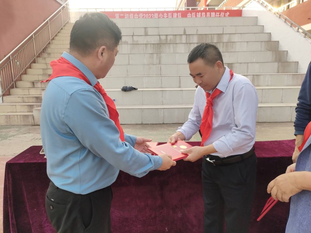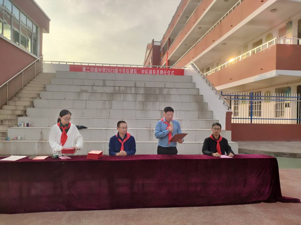 ~ 星星火炬,代代相传。10月13日,在中国少先队建队74周年之际,定远县第二初级中学隆重举行2023级少先队建队暨中队辅导员聘任仪式。该校七年级全体少先队员、中队辅导员参与活动。