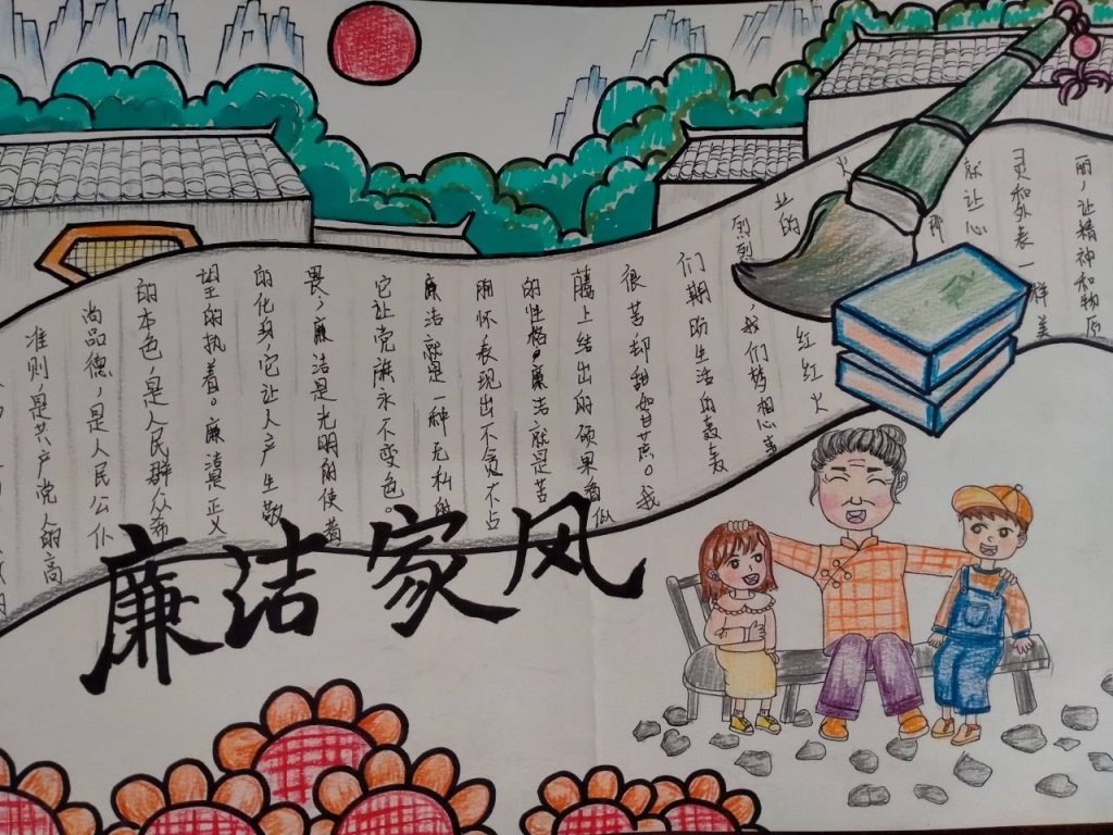 ~ 各班围绕“清廉家风”这一主题,创作了一批高质量的书画作品,同学们传播清廉家风故事、弘扬清廉家风文化。