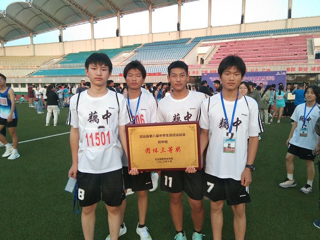 ~ 一分耕耘一分收获。奖牌中熔铸了运动员们的汗水。赛场上,同学们顽强拼搏,尽展风采,在比赛中激发自己的斗志,斩获奖牌,为学校争得荣誉,为家长争光。通过两天的角逐,该校获得“初中团体总分第三”的好成绩。余华润男子跳远笫一并打破县记录。谢崇阳男子800米笫三。范郑男子三项全能笫四。谢崇光男子400米第六。余华润、范郑、谢崇阳、谢崇光男子4×00米第二。刘语,叶昕芮,方陈璟,许童心,女子4×100米第六。范郑男子三级跳远第四。谢崇光男子3000米第六。余华润男子100米预赛打破记录,决赛第六。