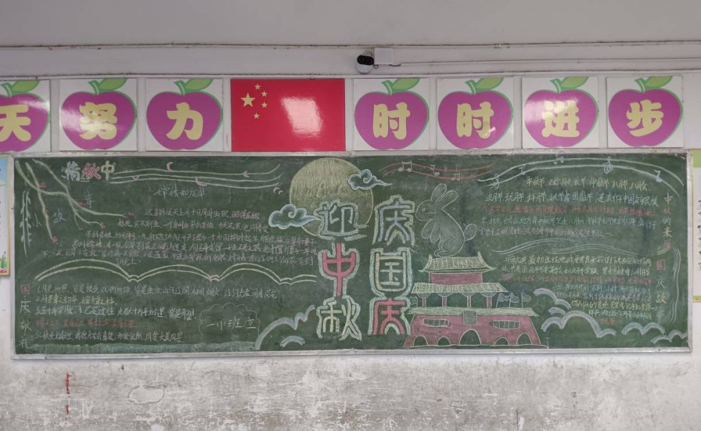 ~ 为庆祝中秋节、国庆节的到来,大力弘扬民族精神,加强爱国主义教育,进一步做好校园文化建设,丰富学生的课余文化生活,9月28日至10月15日,定远县练铺学校开展了以“迎中秋 庆国庆”为主题的黑板报比赛活动。