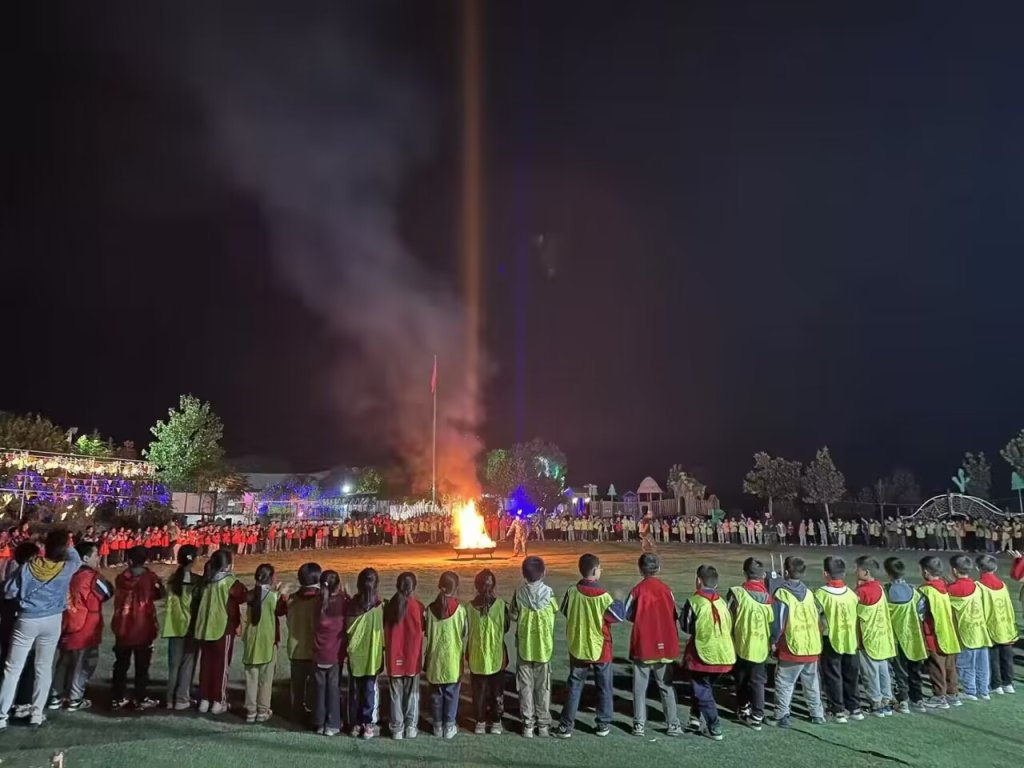 夜幕降临,室外秋寒逼人,同学们来到草坪广场。教练点起了篝火,熊熊大火映红了半边天,同学们载歌载舞,基地成了欢乐的海洋。晚间来到宿舍,同学们在教练的指导下,很快学会了基本生活技能,很多孩子感慨地说,回家后也要自己洗漱、自己铺床叠被子,减轻家长的负担。学生们朴实的话语,说明此次研学实践活动取得了预期的效果。